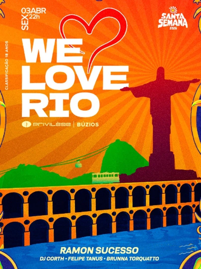 A We Love Rio retorna na Semana Santa com aquele clima carioca que a gente ama! É música a noite todinha, com Ramon Sucesso, Corth, Felipe Tanus, Bruna Toquatto, Marquinhus SP e JP Valente no comando.